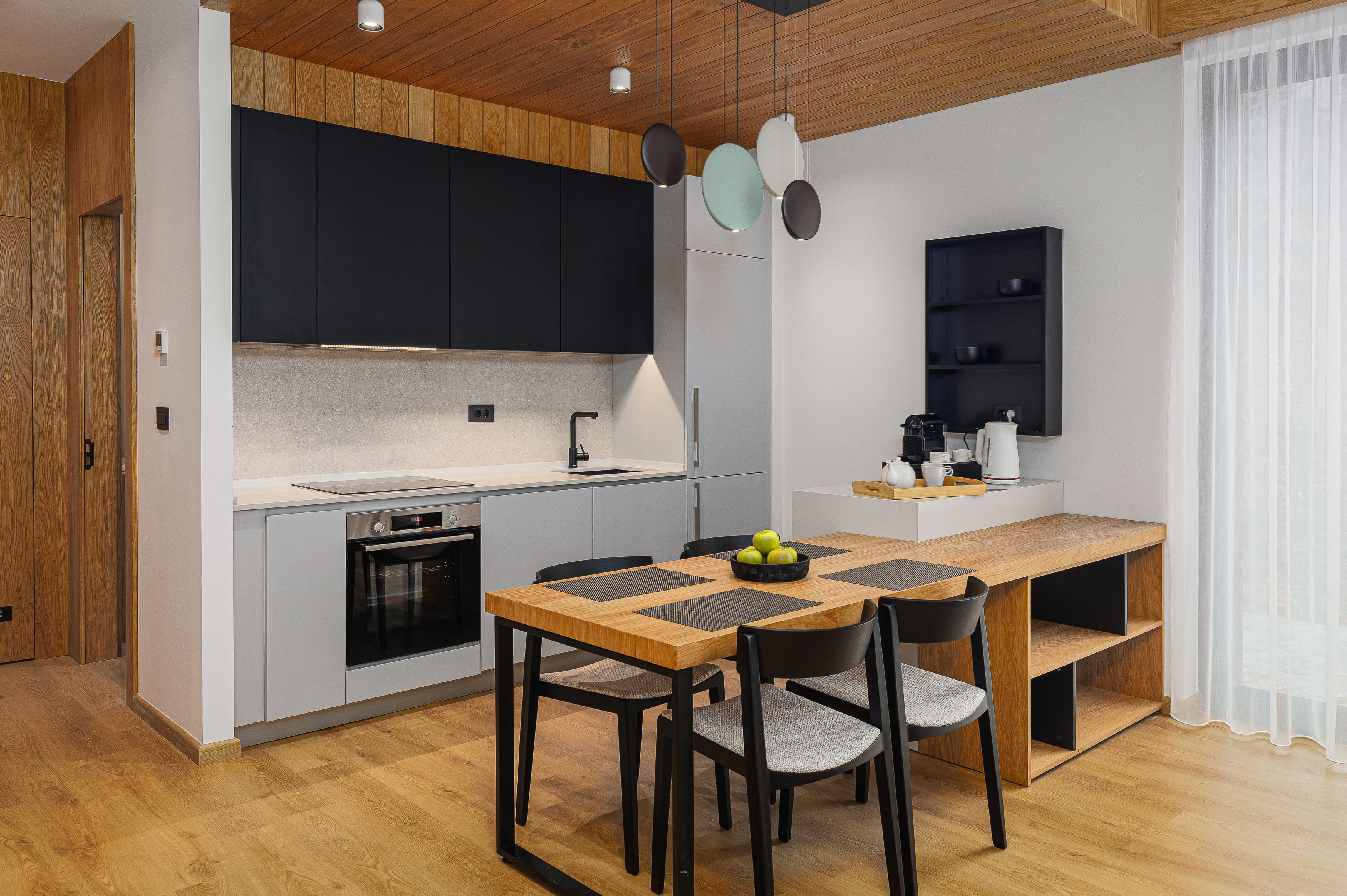 Досліджуйте комфорт наших розкішних двоповерхових апартаментів. Простора вітальня, обідня зона з кухнею, три спальні та приватний сад — ідеально для відпочинку чи розваг. Розслабтеся у власній сауні, яка стане вашим особистим простором спокою та гармонії. Тепла, затишна атмосфера відображає красу гір, роблячи кожну мить у Mountain Retreat незабутньою.